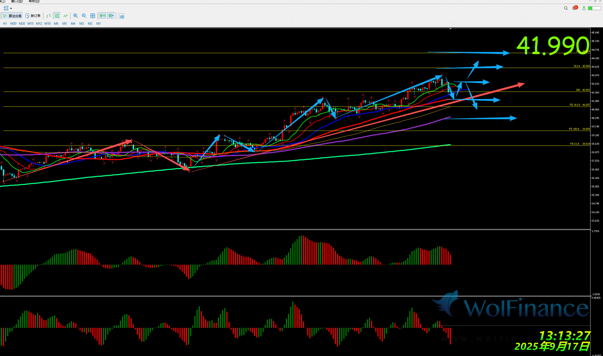 2.激进者在41.50多,止损自带0.35美金,目标:超过0.3美金后移动保本损,之后尝试持有1美金波动择机出场.