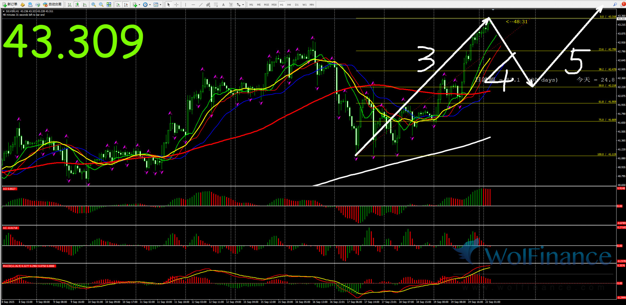 白银关注1小时图3浪行情