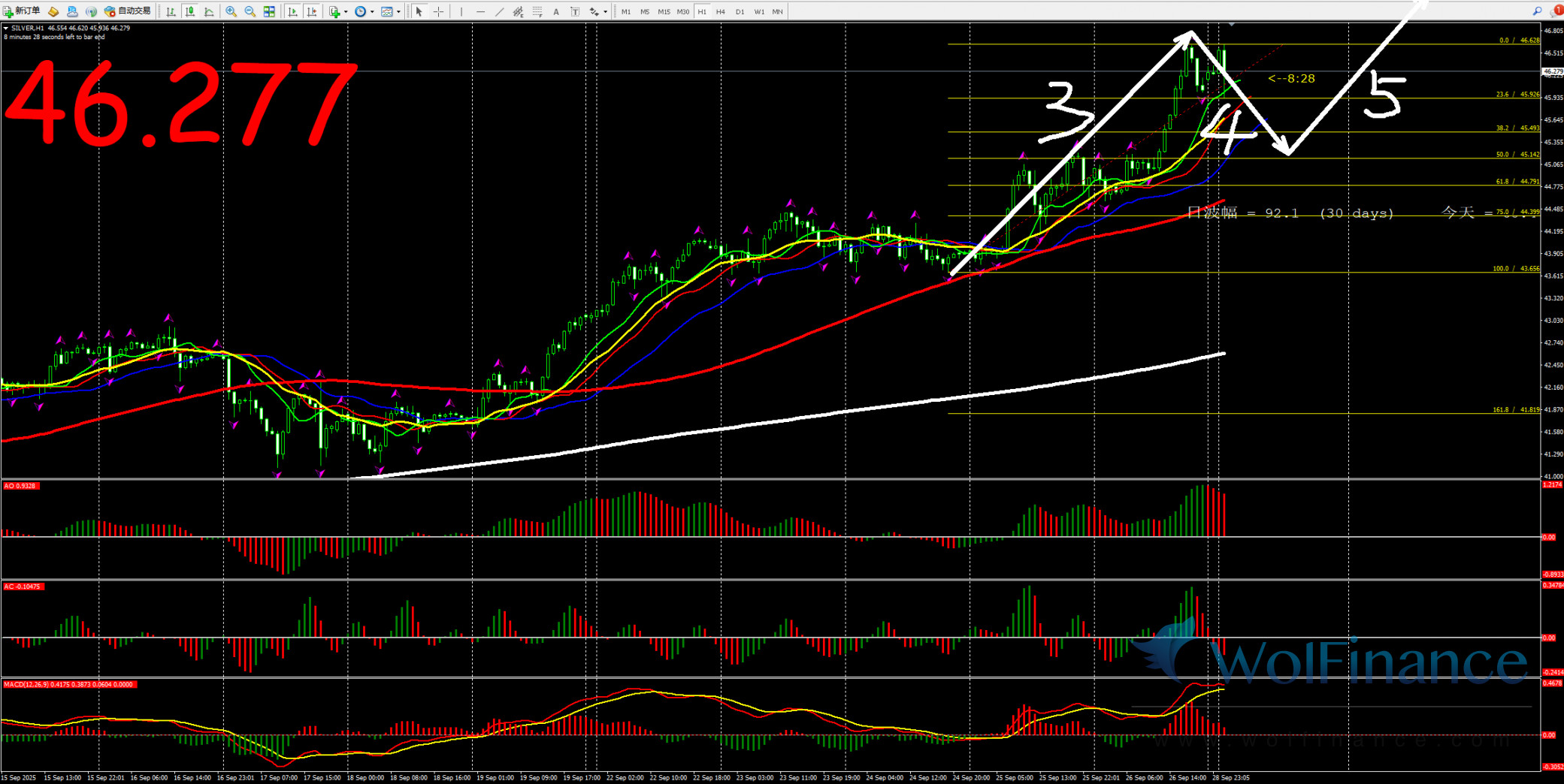 白银关注1小时图3浪行情