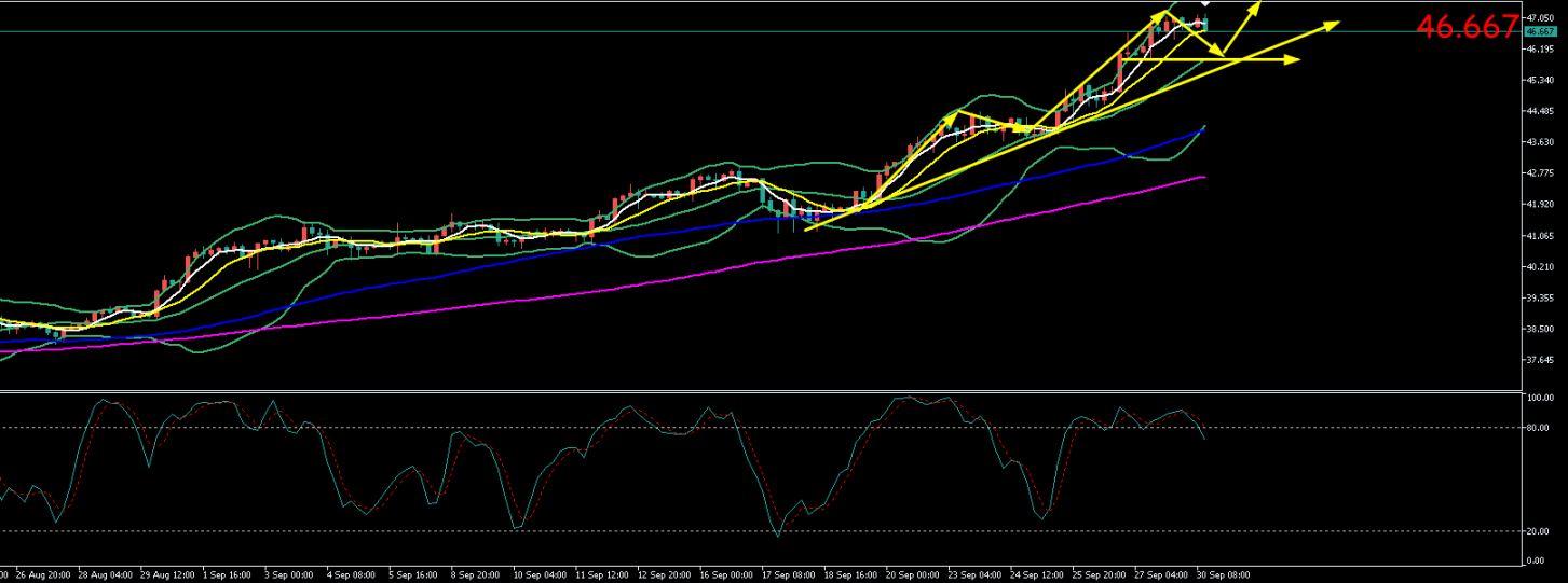 1,上方47.12附近做空,止损47.4 目标位46.8 46.45