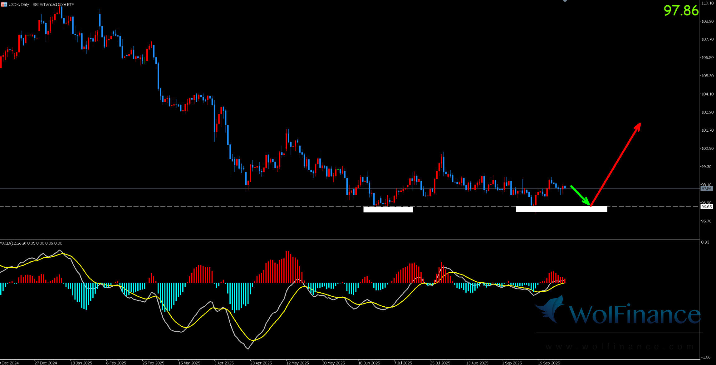 美元指数:图表显示目前美指为震荡反弹行情。
